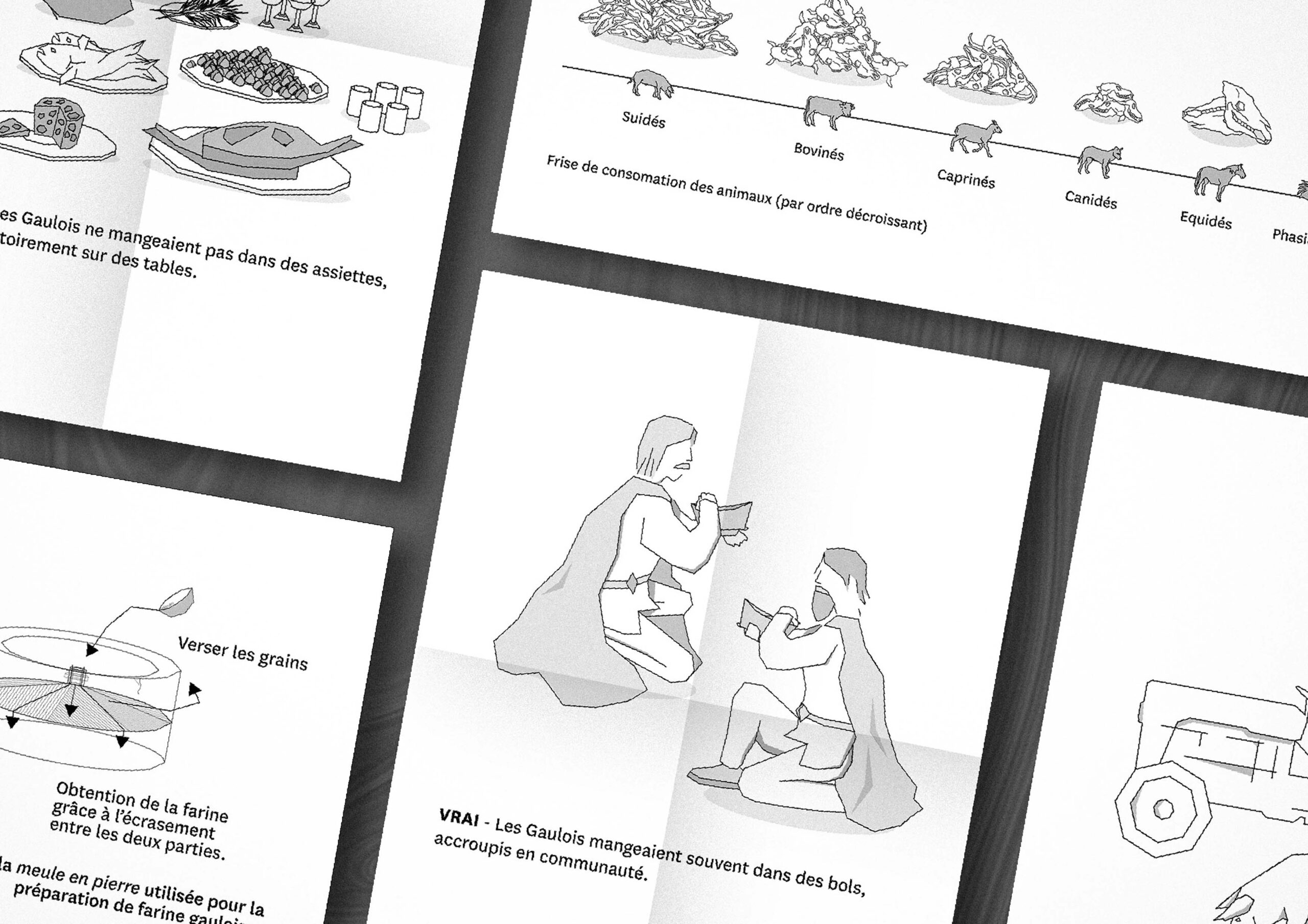 L’exposition a demandé la production d’un ensemble de panneaux pédagogiques récapitulant des données scientifiques issu du rapport de fouilles des archéologues sollicités.